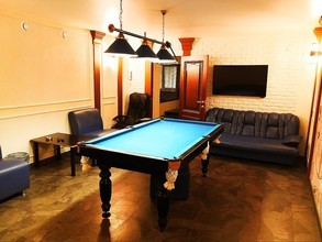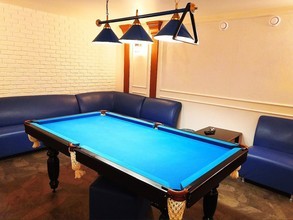 Скучать вам точно не придётся, ведь здесь есть стол и необходимый инвентарь для игры в бильярд, плазменный экран и телевидение для просмотра спортивных матчей или фильмов, стереосистема, чтобы послушать любимую музыку, а также караоке с большим выбором русских и зарубежных песен.